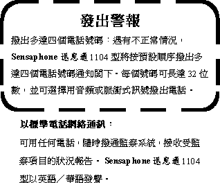 Sensaphone 迅 息 通 系 統 即 時 撥 出 多 達 四 個 電 話 號 碼 , 以 英