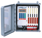 The Express II is equipped with a gel-cell rechargeable battery that will provide 12 hours of backup time. The unit is housed in a NEMA-4X fiberglass enclosure with a front panel LCD and dual-color LEDs to indicate input status to on-site personnel. All programming settings and voice message are stored in nonvolatile memory.